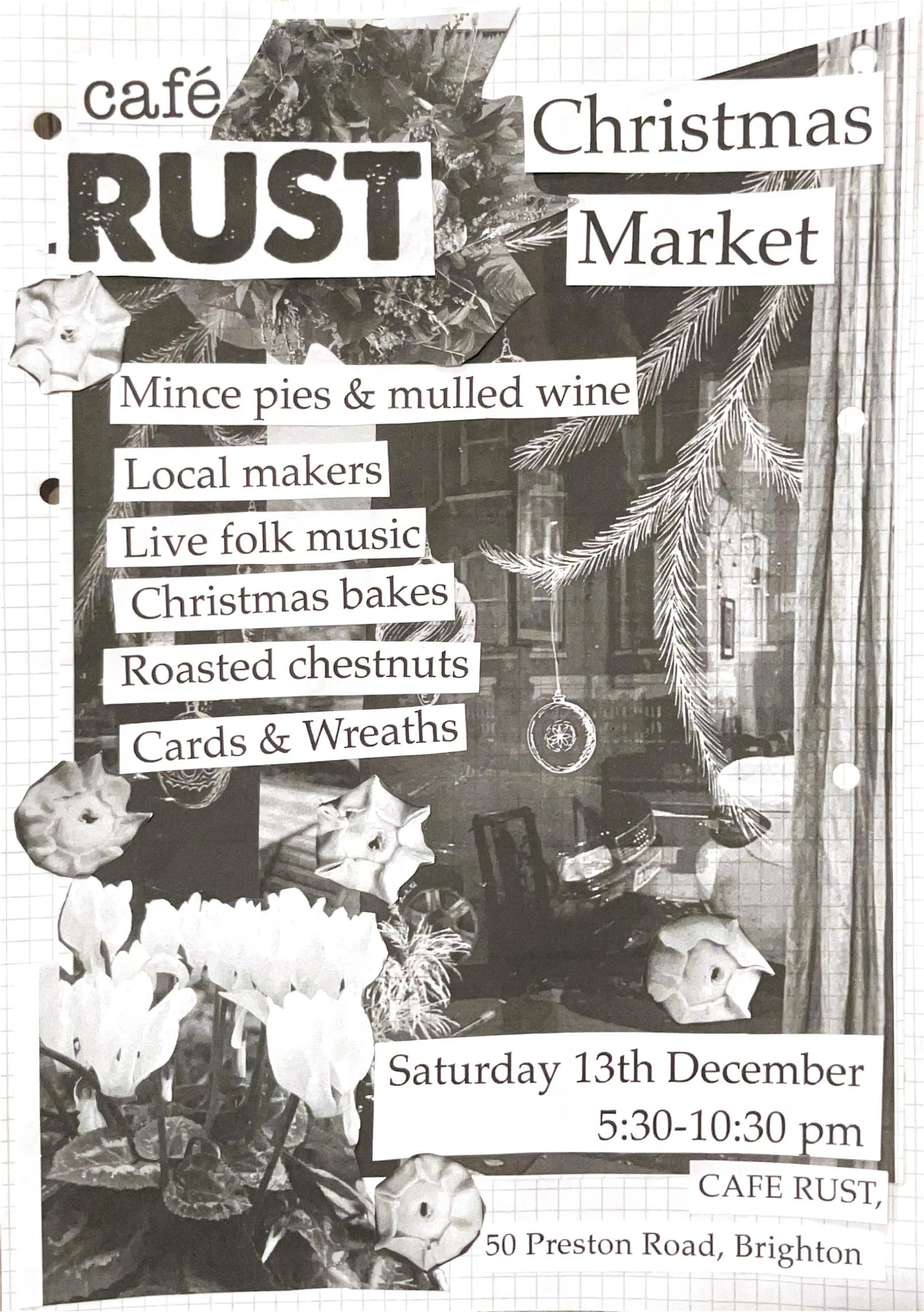 Wander through our cosy, creative Christmas marketplace, where talented local makers, artists, and independent traders will showcase a beautiful selection of handcrafted gifts, artwork, home décor, stocking fillers, and seasonal treats. With stalls spread across the atmospheric Café Rust cellar and the main café space, you’ll find something unique for everyone on your list.